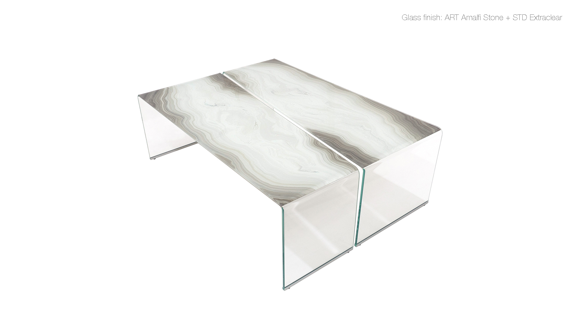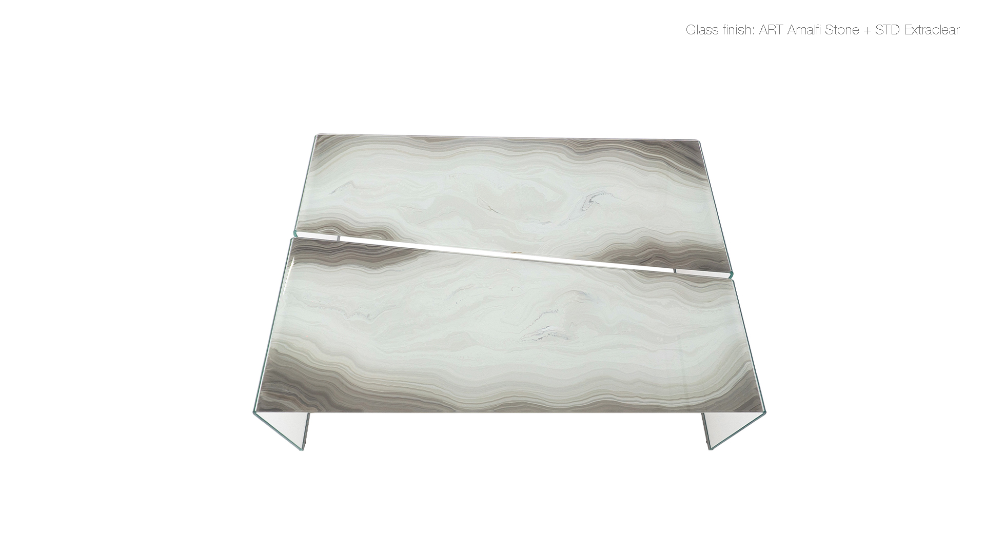 10mm extraclear bent glass. Anodized Aluminum support rails for bottom glass edge with plastic bumpers.